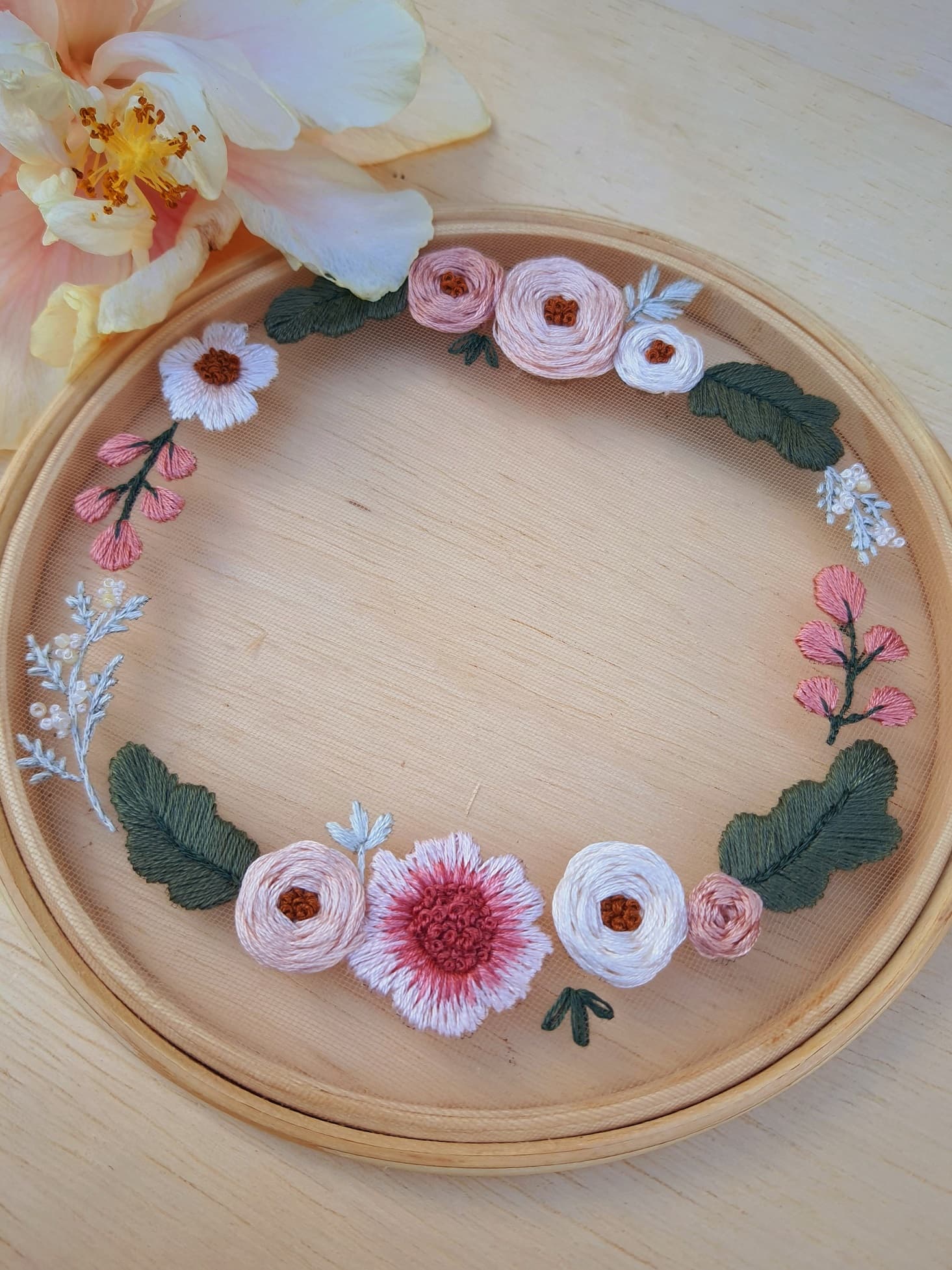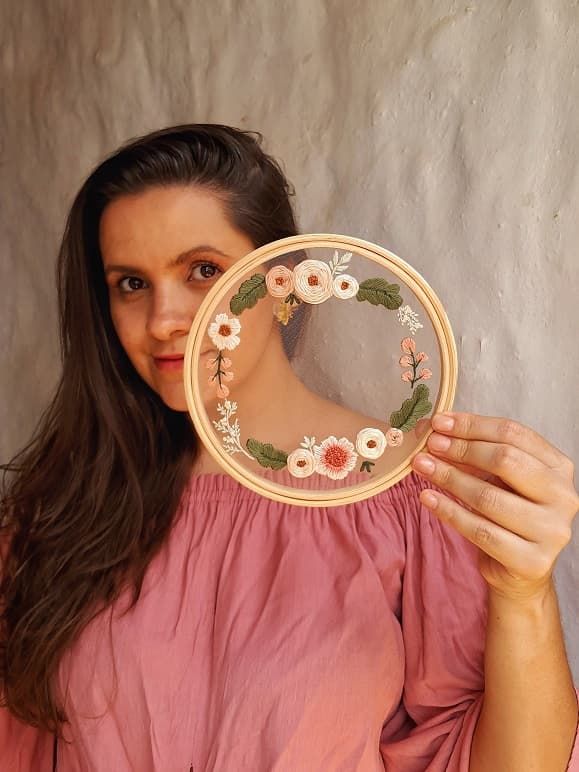 Vou te ensinar os principais pontos para que você consiga fazer uma linda guirlanda bordada no tule.